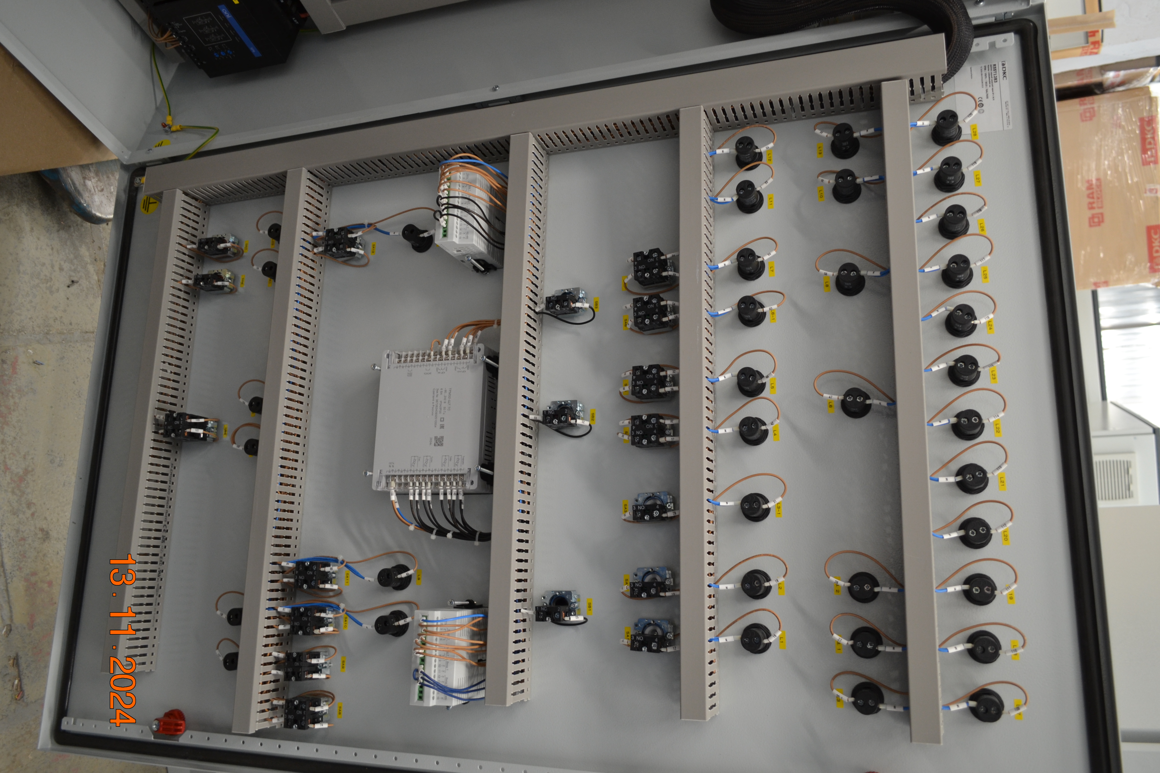 В шкаф интегрированы каналы управления горелками трёх газовых котлов, с возможностью индивидуальной настройки и независимого аварийного отключения. Ввод и распределение питания выполнены на основании проектного задания, с резервированием ключевых цепей.